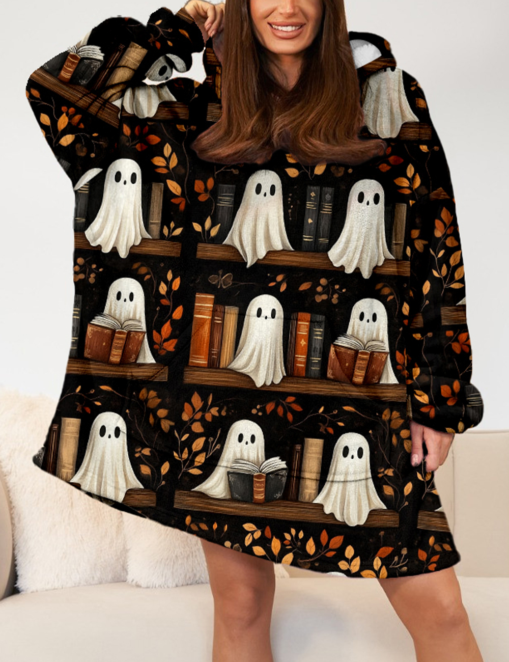 Ghoul Book Club Reading Ghosts Halloween Bookish Flannel Blanket Hoodie