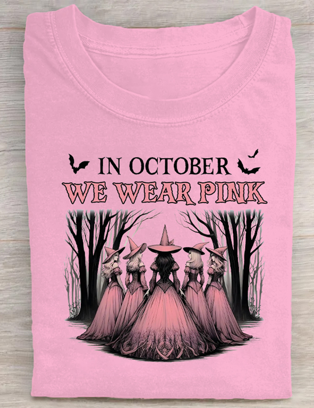In October We Wear Pink Halloween Breast Cancer Awareness T-Shirt