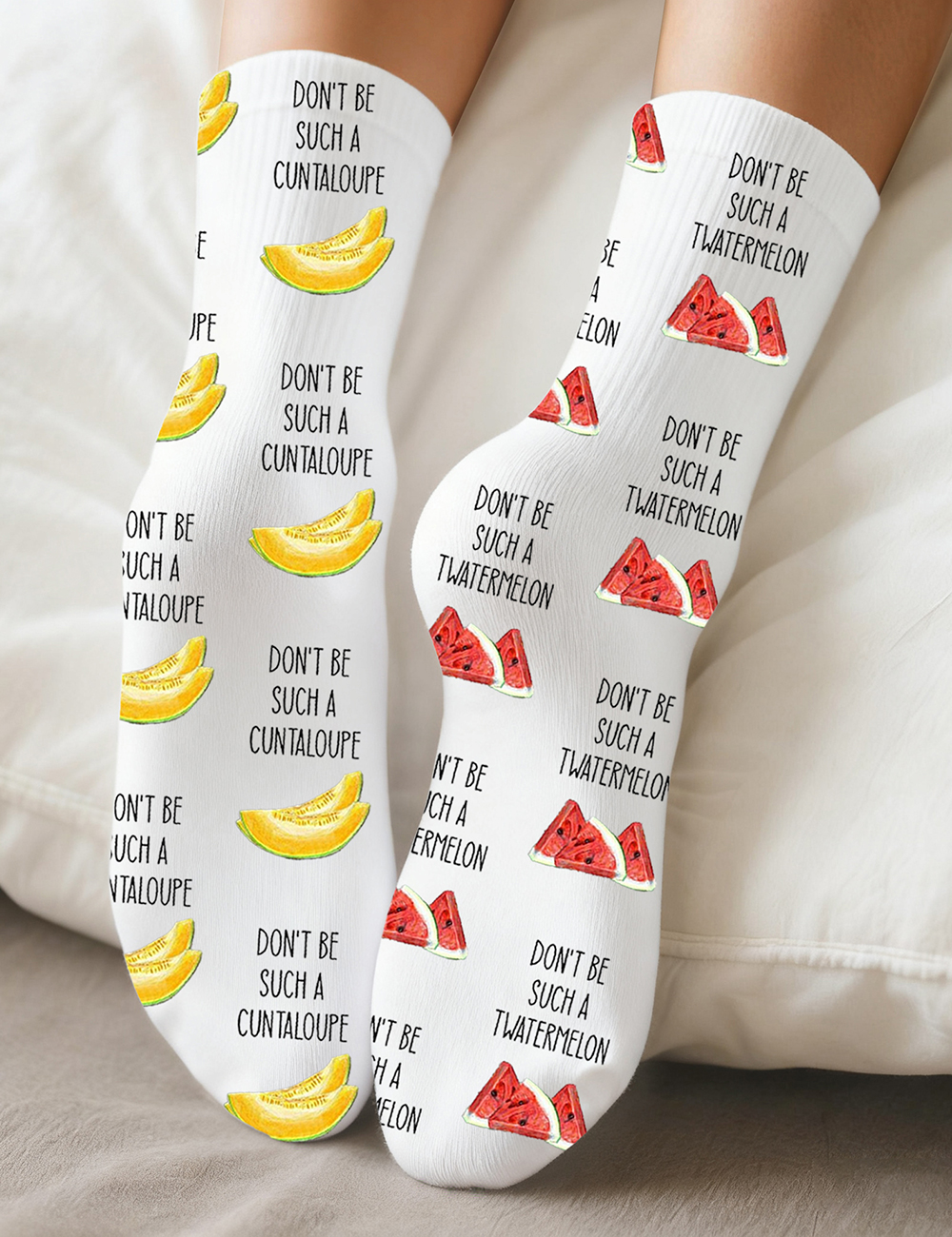 Watermelon And Cantaloupe Waffle Unisex Socks