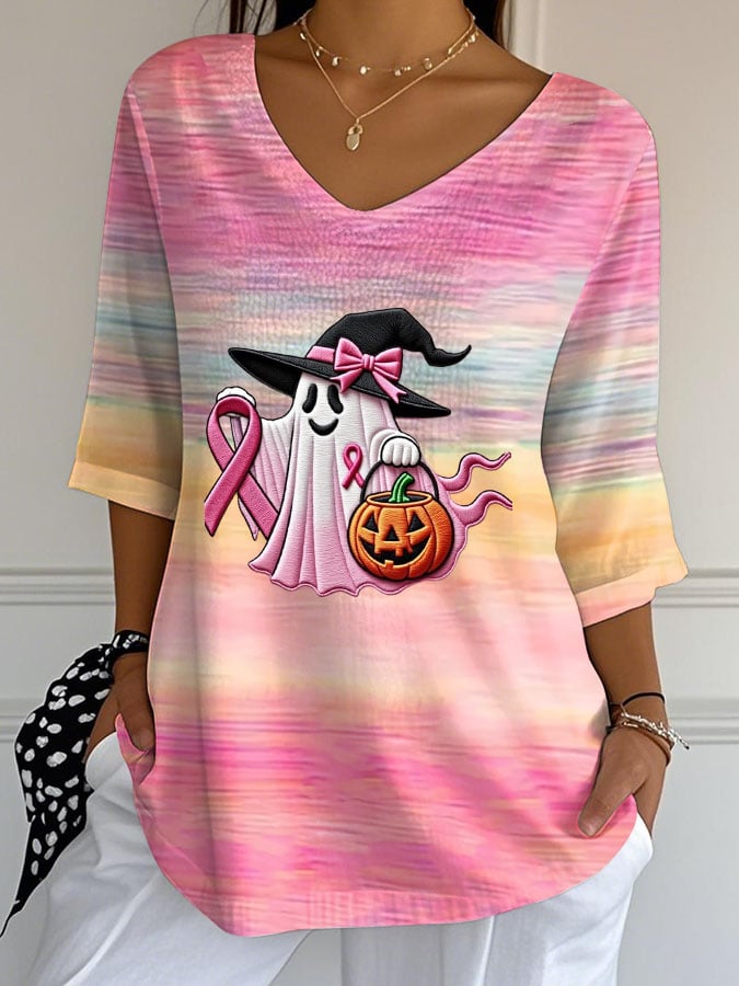 Women's Breast Cancer Awareness Print Casual Shirt