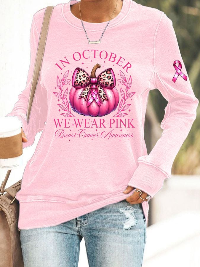 Women's In October We Wear Pink Print Breast Cancer Awareness Sweatshirt